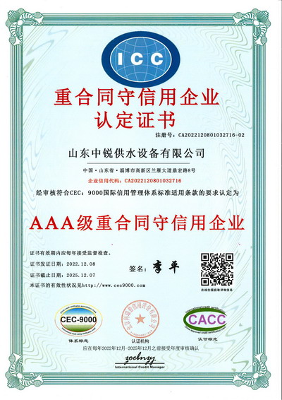 重合同守信用企業(yè)認(rèn)定證書(shū)(AAA級(jí))