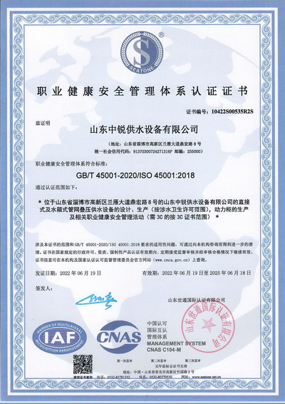ISO45001職業(yè)健康安全管理體系證書(shū)