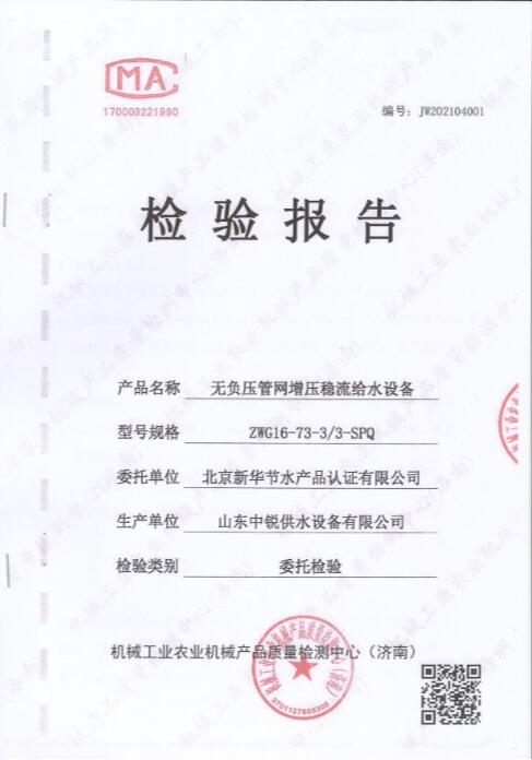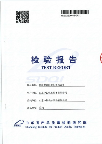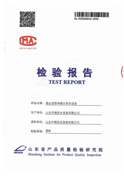 穩(wěn)壓型管網(wǎng)疊壓供水設(shè)備檢驗(yàn)報(bào)告