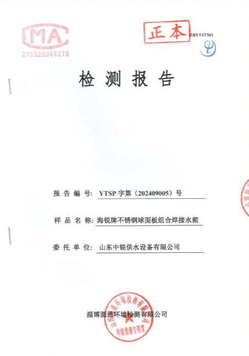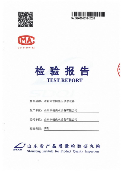水箱式管網(wǎng)疊壓供水設(shè)備檢驗(yàn)報(bào)告