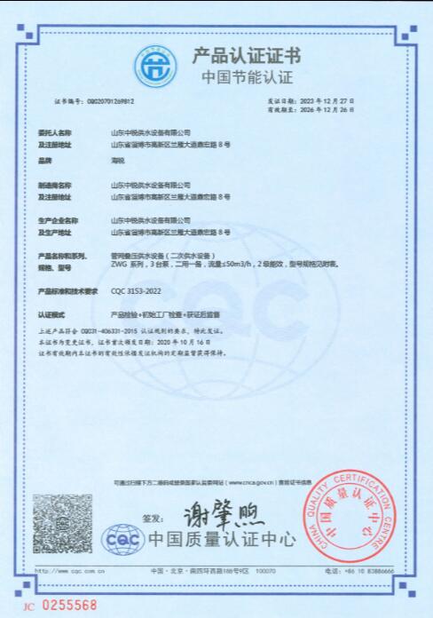 中銳牌直接式管網(wǎng)疊壓不銹鋼